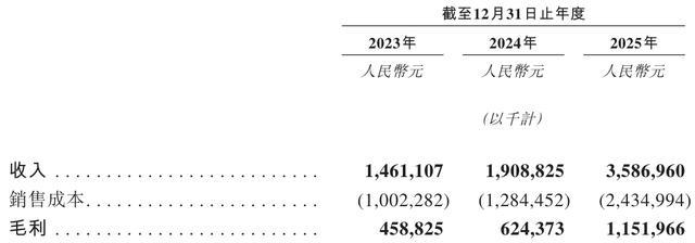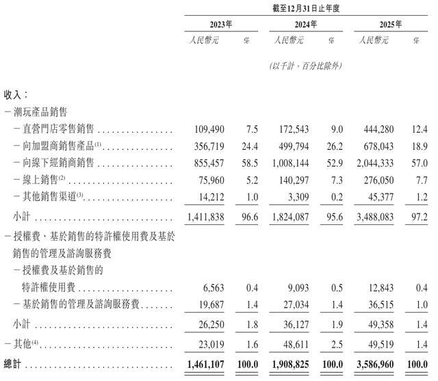 与GMV的高增长相呼应,TOP TOY的收入也呈稳步攀升之势。2023年至2025年(即“报告期”)该公司的收入分别为14.61亿元、19.09亿元和35.87亿元,其中2025年的增幅高达87.9%,增长动能得以持续释放。